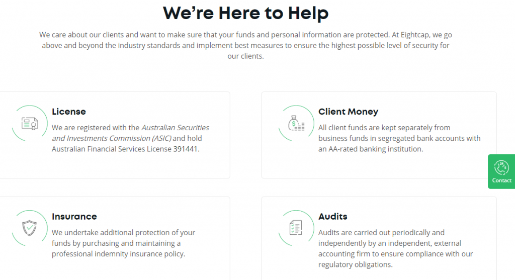 EightCap易匯創立於澳洲,持有澳洲證券委員會ASIC的監管牌照 (391441),客戶資金獨立存放於澳洲國民銀行(NAB)的信託帳戶中,與澳洲客戶使用同樣的規則進行資金的維護和管理。