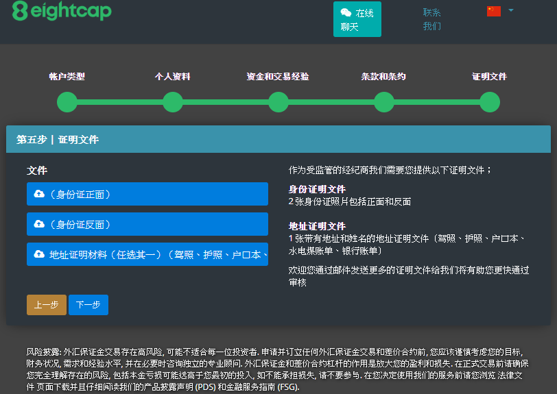 3.提交身分證以及地址證明,經過確認,台灣客戶可以上傳護照以及駕照這兩項文件作為開戶證明。