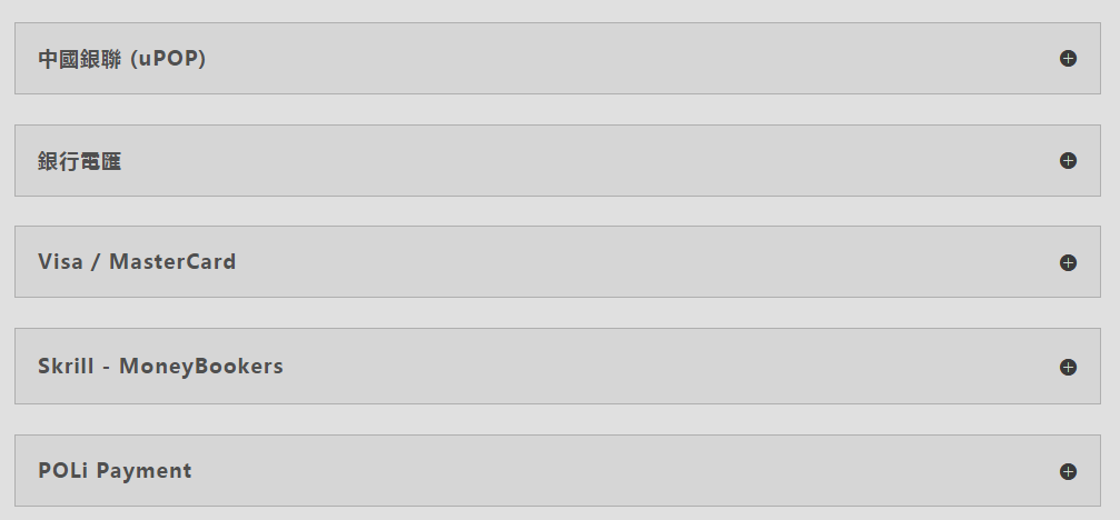 易匯提供信用卡、借記卡、Skill電子錢包以及中國銀聯在線支付入金,只要開好帳戶後登入帳號管理中心,即可獲取入金所需要的資訊。
